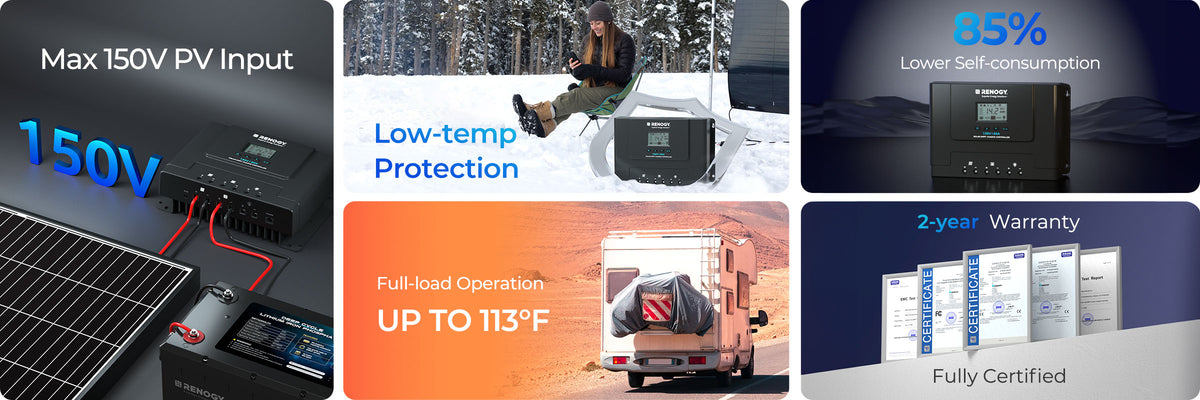 - Compatible con sistemas de 12V a 48V y múltiples tipos de batería, incluida LiFePO4, AGM, Gel y plomo-ácido.