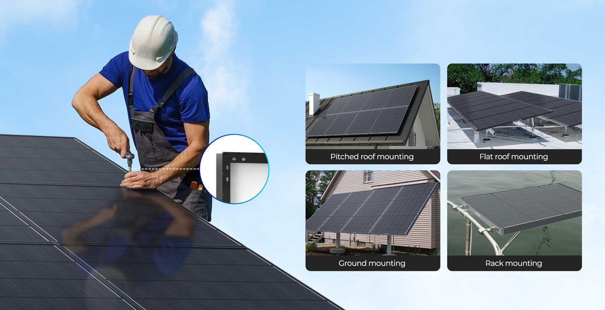 Fabricado con un marco de aleación de aluminio de 1,1 mm de grosor, este panel ofrece una protección superior y una vida útil prolongada, incluso en condiciones meteorológicas extremas.