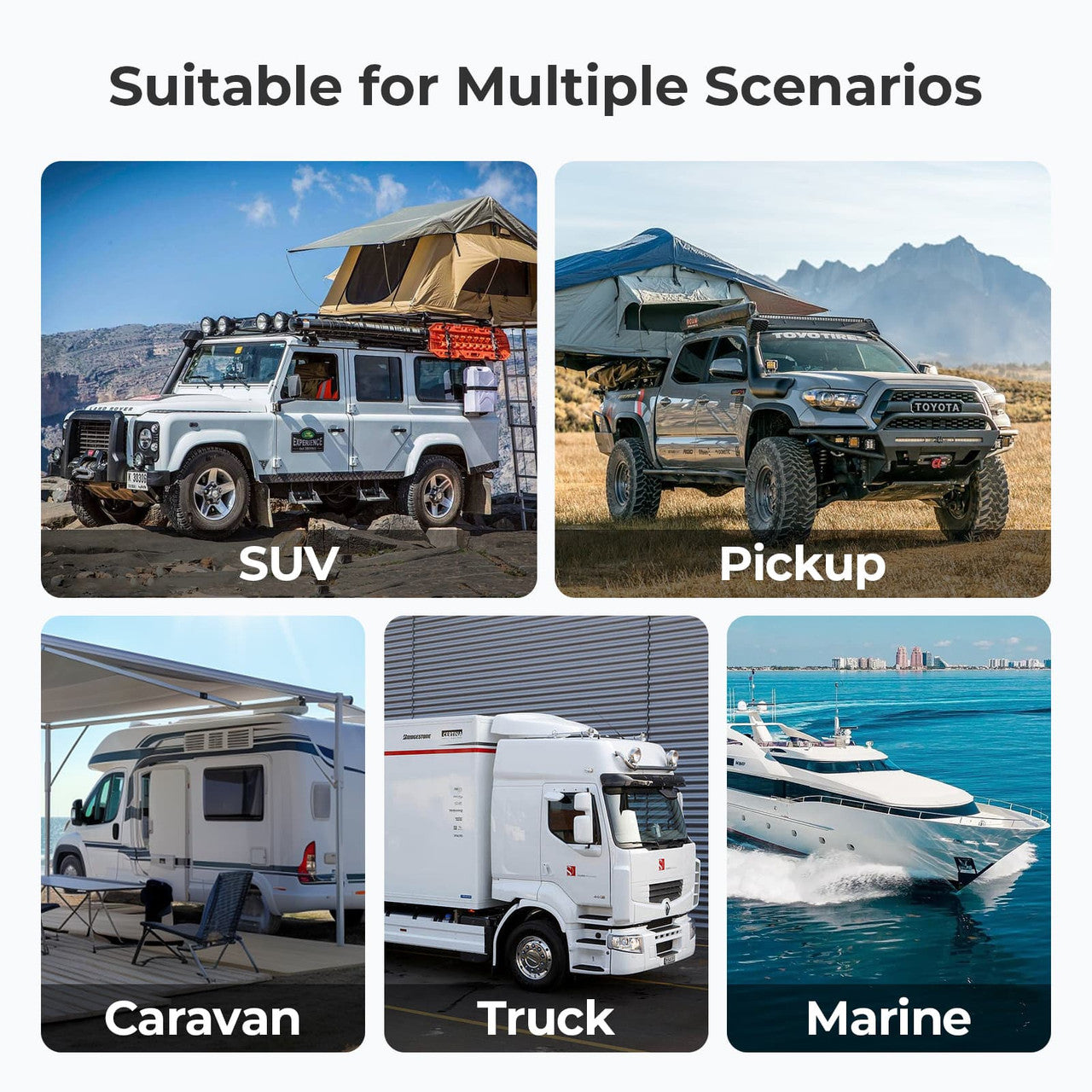 This battery charger efficiently powers the house battery while delivering a trickle charge to the starter battery, ensuring your vehicle starts reliably every time.