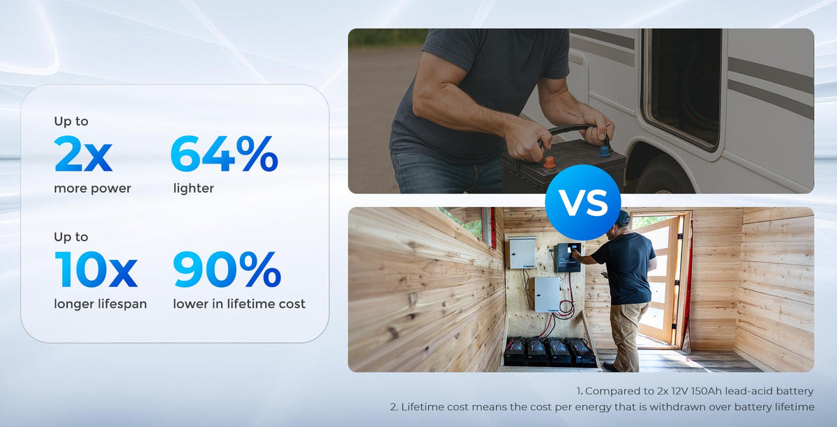 - Ofrece un 59 % más de potencia que una batería LiFePO₄ de 200 Ah, para un rendimiento superior.