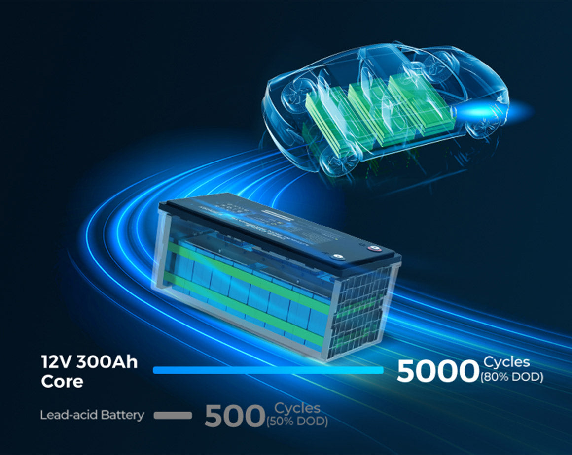 12V 300Ah Core Series Deep Cycle Lithium Iron Phosphate Battery w/Self-Heating New Version