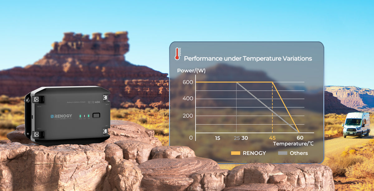 El cargador DCC de segunda generación reduce inteligentemente la potencia de salida en entornos de alta temperatura, garantizando una carga segura y eficiente sin comprometer el rendimiento del sistema.