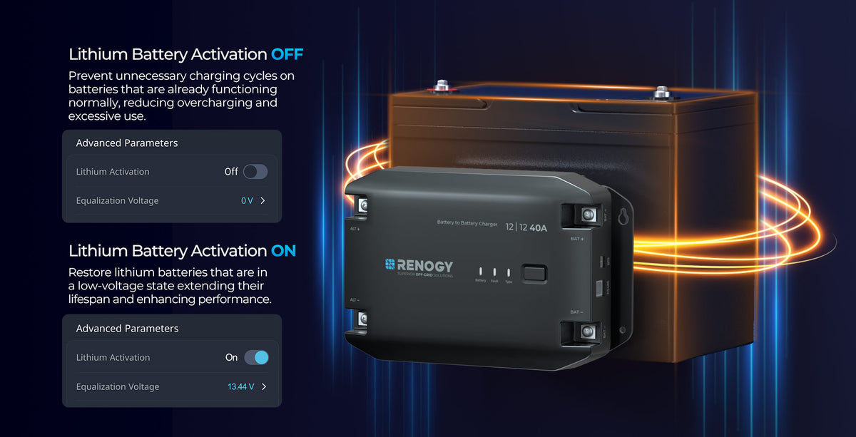 Activa o desactiva la función de activación de baterías de litio según el estado de la batería desde la aplicación DC Home, ¡prolongando la vida útil de tu batería directamente desde el móvil!