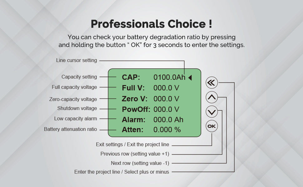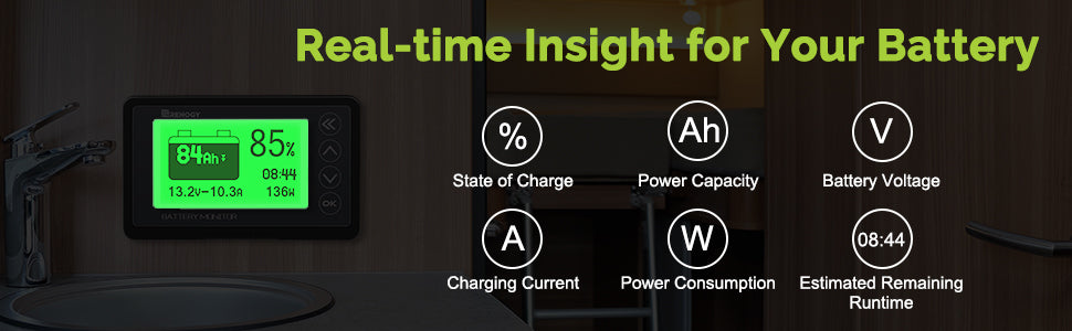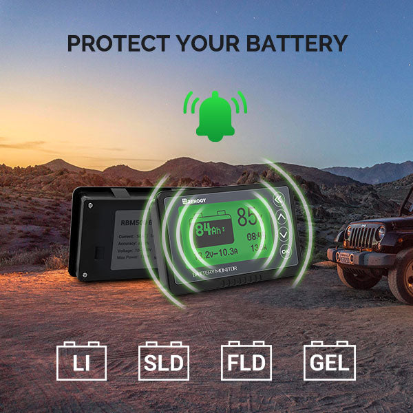 - 【Protege las baterías】 Con funciones de alarma por alta y baja capacidad, nuestro monitor de batería con shunt emite alertas, haciendo parpadear la retroiluminación y el valor de voltaje simultáneamente, protegiendo así las baterías de descargas excesivas.