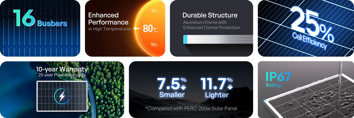 To choose a suitable controller for your Renogy 16BB N-Type 200 Watt 24V Solar Panel, it's important to consider the panel's optimized voltage designed for efficient energy conversion, with an open-circuit voltage (Voc) of 37.44V; for single or parallel connections, the controller's maximum PV input voltage should be at least 40V, while for series connections, the controller's maximum PV input voltage should be no less than 40V multiplied by the number of panels connected in series, ensuring optimal performance and compatibility with your solar panel system.