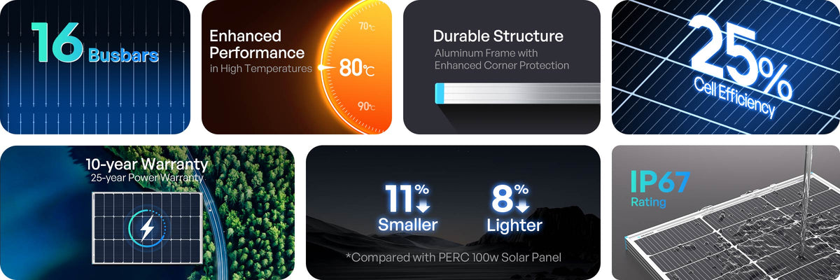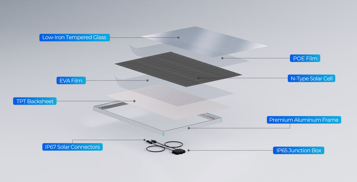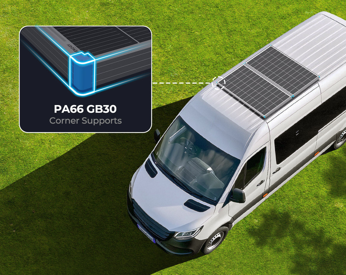 EVA film and N-Type cells create a solar panel that holds up through years of travel. Whether parked under the sun or pushing through storms, it stays strong and reliable.