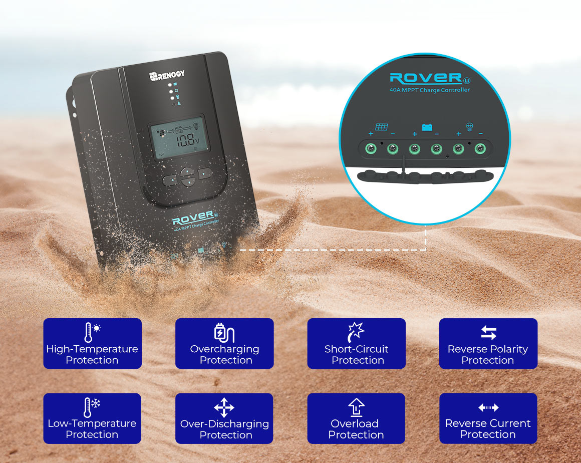 Rover charge controller stands out with its rapid heat dissipation capabilities, ensuring efficient performance even in the most demanding environments. With the ability to quickly dissipate heat, this controller maintains peak performance, safeguarding your batteries and system components.